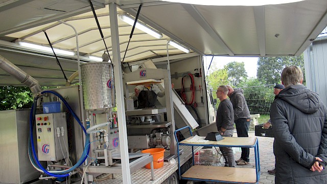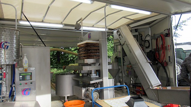 Bei einer guten Ernte ist es eine besondere Herausforderung, sämtliches Obst zeitnah selbst vollständig zu verarbeiten, und die eigenen Möglichkeiten kommen schnell an ihre Grenzen. Das Wegwerfen oder im Garten Liegenlassen von Obst ist heute in unserer Überflussgesellschaft trotz steigender Nachfrage an regionalen Produkten ein Widerspruch. Streuobstwirtschaft hingegen ist nach jahrzehntelanger Vernachlässigung und gezielter Steuerung des Obstanbaus in Richtung Intensivanbau wieder am Kommen. Eine ökologische und sinnvolle Möglichkeit besteht darin, sich aus dem Obst frischgepressten Saft herstellen zu lassen. Die Mobile Saftpresse von „Olli´s Saftladen“ macht genau das möglich. Die Besonderheit an der Mosterei auf Rädern: Der Saft besteht zu 100 % aus den eigenen Früchten und enthält keinerlei Zusätze. Dabei können auch außergewöhnliche Mischungen fernab von einfachem Apfelsaft kreiert werden.