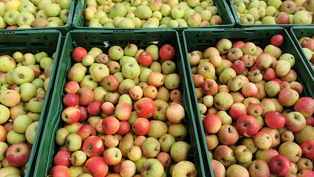 In der Späten Saison werden die Äpfel mürbe und die Saftausbeute schrumpft, daher: je früher, desto besser.