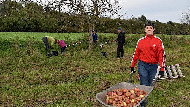 Die eingesammelten Äpfel gehen dann zu Olli`s Saftpresse und werden dort zu Apfelsaft verarbeitet. Alle die Mitpflücken können den Apfelsaft dann zu sehr günstigen Konditionen über Ingo Dittmer erwerben.