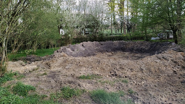 Seit fünf Jahren kümmert sich die NABU Ortsgruppe Wardenburg engagiert um eine rund 1,6 Hektar große Streuobstwiese in Achternholt. Die Fläche war vor etwa 30 Jahren von der Biologischen Schutzgemeinschaft Hunte Weser-Ems angelegt worden, jedoch bei der Übernahme durch den NABU in einem stark verwilderten Zustand. Weiden-, Haselnuss-, Brombeer- und Schlehensträucher überwucherten einen Teil der Obstbäume und in einen verflachten Entwässerungsgraben hatten sich Erlen ausgebreitet. Hinzu kommt eine besondere Bodenbeschaffenheit: Unter einer knapp 20 Zentimeter dicken Humusschicht liegt tonhaltiger Untergrund, der bei Regen zu Staunässe führt und in Trockenphasen zu wenig Waser spendet.