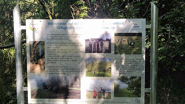 Am Zugang zur Wiese informiert nun eine neue Tafel über das Thema „Streuobstwiese“. Langfristig möchte die NABU Ortsgruppe Wardenburg das Areal weiter betreuen und auch Schulen für das Thema gewinnen. Ziel ist es, den Schülern die Bedeutung und Artenvielfalt traditioneller Streuobstwiesen näherzubringen – lebendige Umweltbildung direkt vor der eigenen Haustür.