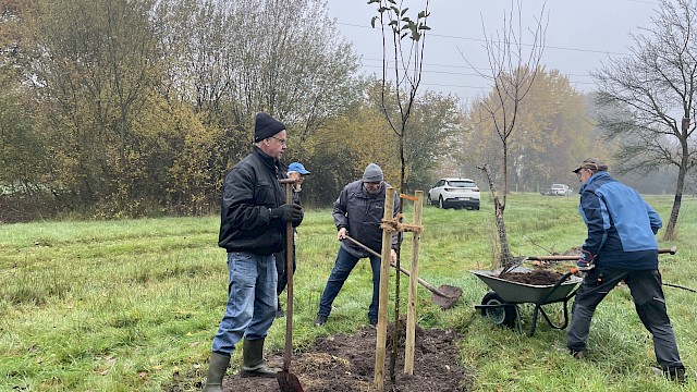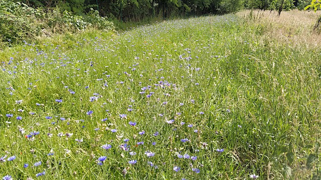 Damit auch im Sommer ausreichend Blüten für Wildbienen und die Bienenvölker des örtlichen Imkers vorhanden sind, entstand auf einer weiteren Teilfläche eine etwa 200 Quadratmeter große Blühwiese. Als Ersatz und Ergänzung für einige abgestorbene Obstbäume wurden im Herbst zwölf neue hochstämmige Bäume dazugepflanzt.