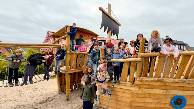 Zusammen mit den Kindern aus dem Hort Wardenburg wurde der mit einem hochwertigen Spielschiff neu ausgestattete Spielplatz im Liegnitzer Weg am 9. Oktober feierlich eingeweiht.